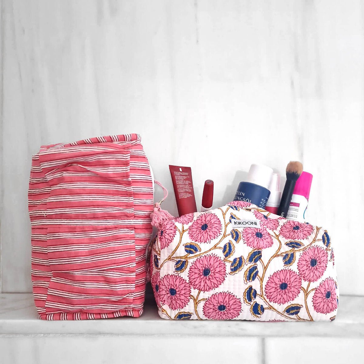 Shiki Mi is een handgemaakte toilettas die speels design en dagelijks gemak combineert. Het compacte formaat past moeiteloos in je handtas en biedt ruimte voor essentials zoals handcrème, lippenstift en zonnebrand. Elk exemplaar is met liefde met de hand gemaakt en daardoor uniek.